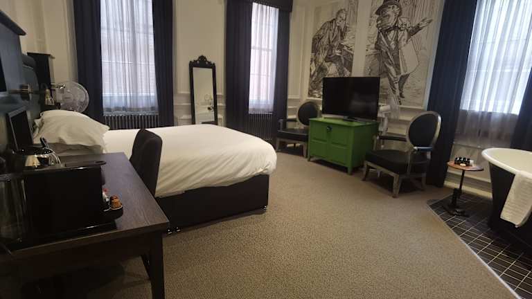 Die Zimmer im Judges Court Hotel sind individuell gestaltet und bieten modernen Komfort. Jedes Zimmer ist mit einer Minibar, einer Tee-/Kaffeemaschine, einem Telefon, einem Flachbildschirmfernseher und kostenlosem WLAN ausgestattet. Im Badezimmer finden Sie eine Dusche und einen Haartrockner sowie kostenlose Kosmetikartikel.