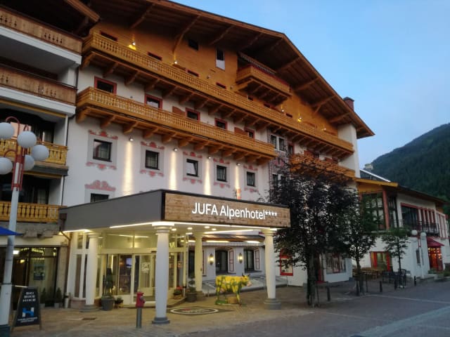 Das JUFA Alpenhotel Saalbach**** ist mit seinen komfortablen Zimmern, dem Wellnessbereich und dem Kinderspielplatz perfekt für einen Familienurlaub geeignet. Das Hotel bietet Ihnen eine ideale Unterkunft in zentraler Lage direkt in der Fußgängerzone von Saalbach. Im Winter können Sie direkt vor der Hoteltüre Skifahren und im Sommer starten Sie Ihre Wander- und Mountainbiketouren direkt vom Hotel aus. Die Joker Card, die von Ende Mai bis Ende Oktober im Preis inbegriffen ist, bietet Ihnen viele kostenlose Vorteile und Ermäßigungen, darunter die Nutzung der Seilbahnen in der Region. Inklusive sind zudem die Öffentlichen Verkehrsmittel im gesamten Land Salzburg.