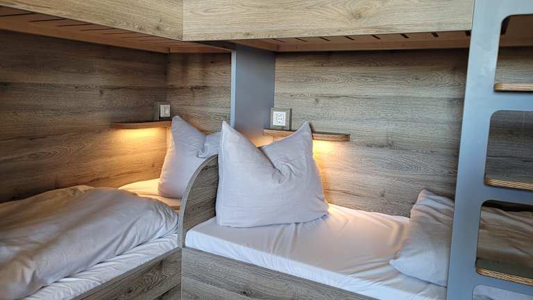 Die Jugendherberge bietet 2- bis 6-Bettzimmer mit Dusche/WC. Die 3 Panoramadorms sind mit 8-Bettzimmern eingerichtet, verfügen über einen tollen Ausblick und sind ideal für preisbewusste Backpacker. Die Dorms sind geschlechtlich gemischt und für Gäste ab 18 Jahren. Alle Zimmer sind Nichtraucherzimmer und mit Stockbetten ausgestattet. Für die Sicherheit sorgen ein Keycardsystem, sowie abschließbare Schränke auf den Zimmern. Hinweis: DJH-Mitgliedskarte erforderlich.