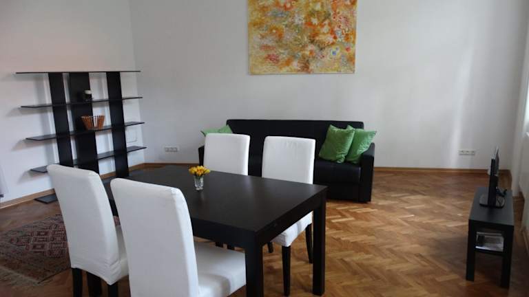 Das Studio-Apartment im Jugendstil Garconniere bietet einen charmanten Wohn- und Schlafbereich mit einer gut ausgestatteten Küchenzeile. Die hohen Decken verleihen dem Raum ein großzügiges und luftiges Gefühl. Das eigene Badezimmer ist mit einem Haartrockner ausgestattet. Zur weiteren Ausstattung gehören ein Flachbild-Sat-TV und ein DVD-Player für Ihre Unterhaltung. WLAN ist ebenfalls kostenfrei verfügbar.