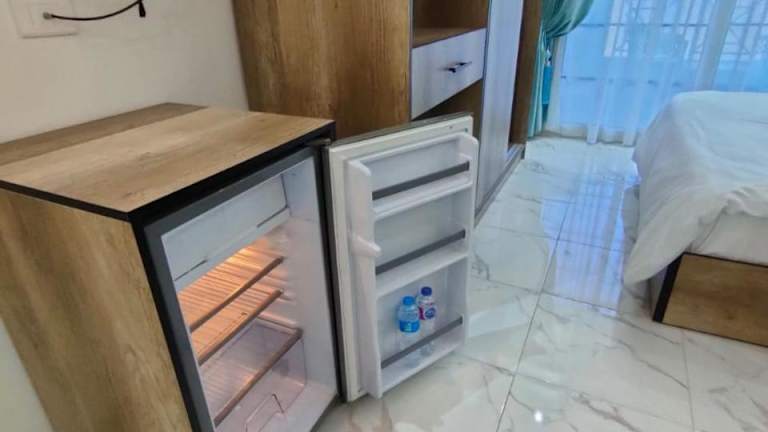 Die Wohnung umfasst ein klimatisiertes Schlafzimmer, ein Badezimmer mit Bidet, Dusche und kostenlosen Pflegeprodukten sowie einen Sitzbereich. Die Küche ist komplett ausgestattet mit einem Kühlschrank und einer Mikrowelle.