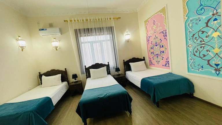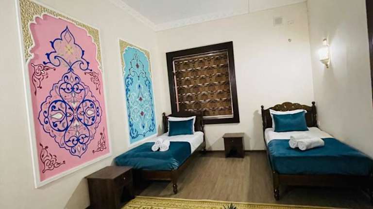 Das Hotel Jumadaler Boutique Bukhara Old Town in Bukhara ist die perfekte Wahl für Reisende, die eine einzigartige Unterkunft in der historischen Altstadt von Bukhara suchen. Mit einem schönen Garten, einer Gemeinschaftslounge und einer Terrasse bietet das Hotel den Gästen eine entspannte Atmosphäre. Der 24-Stunden-Rezeptionsservice, Flughafentransfers und kostenfreies WLAN sorgen für einen angenehmen Aufenthalt. Die klimatisierten Zimmer sind mit modernen Annehmlichkeiten wie einem Flachbild-Sat-TV, einem Kühlschrank und einem Wasserkocher ausgestattet. Das eigene Badezimmer verfügt über eine Dusche, kostenlose Pflegeprodukte, einen Haartrockner und Hausschuhe. Ein leckeres Frühstücksbuffet oder ein kontinentales Frühstück kann im Hotel genossen werden. Der internationale Flughafen Bukhara liegt nur 5 km entfernt und ist bequem zu erreichen.