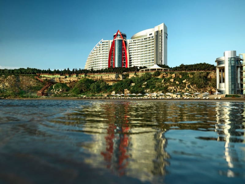 Das Jumeirah Bilgah Beach Hotel befindet sich in Baku, direkt am Strand. Die Entfernung zum Flughafen beträgt etwa 13 km, zum Stadtzentrum sind es ca. 35 km. Der nächste Bahnhof liegt in etwa 30 km Entfernung und der Golfplatz ist ca. 18 km entfernt.