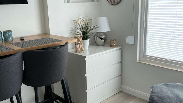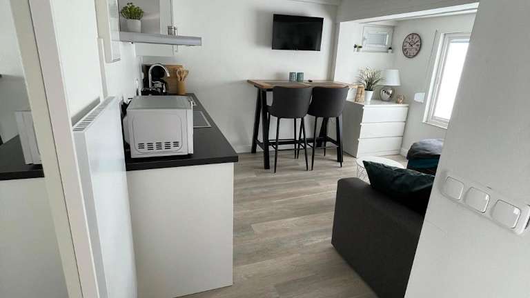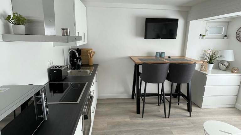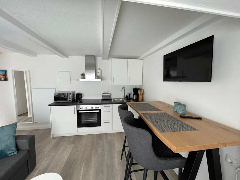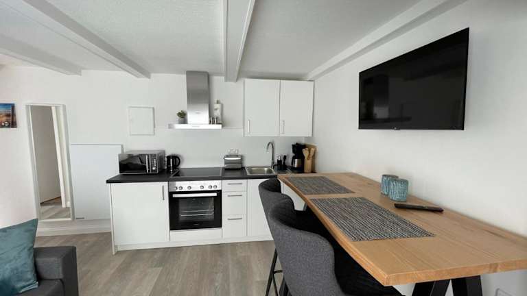 Die Ferienwohnung ist mit einem Flachbild-TV ausgestattet. Die Küchenzeile verfügt über einen Kühlschrank, einen Geschirrspüler, einen Ofen, eine Kaffeemaschine und einen Wasserkocher.
