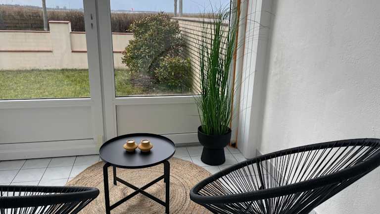 Juna ist eine Unterkunft, die durch ihren Gartenblick besticht und sich direkt am Strand befindet. Die Ferienwohnung bietet Zugang zu kostenlosem WLAN und einem privaten Parkplatz für Gäste.