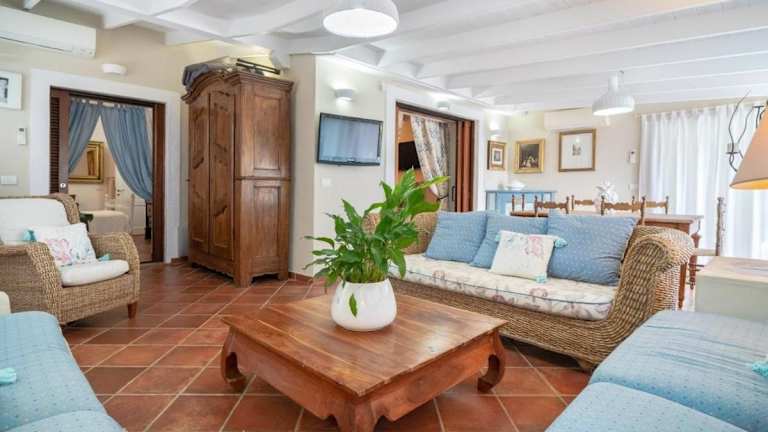 Die Villa umfasst 3 Schlafzimmer, ein Wohnzimmer und eine voll ausgestattete Küche mit Kühlschrank und Kaffeemaschine. Zudem sind 3 Badezimmer mit Bidet und Dusche vorhanden. Handtücher und Bettwäsche werden bereitgestellt.