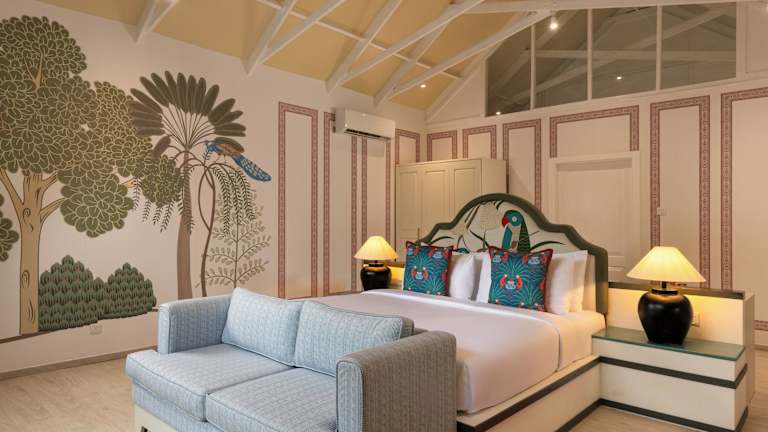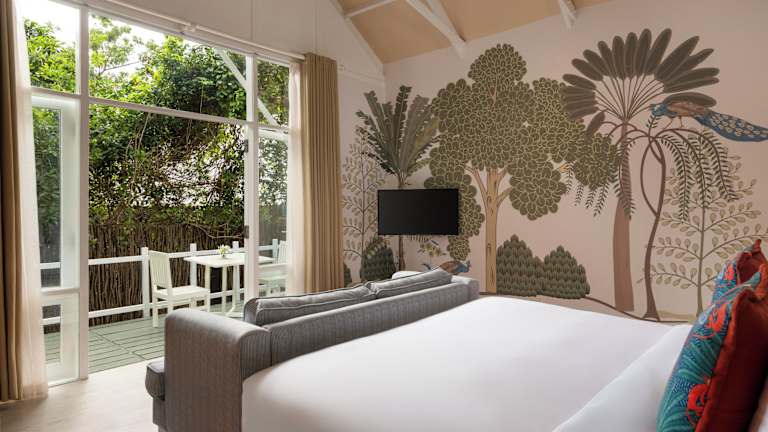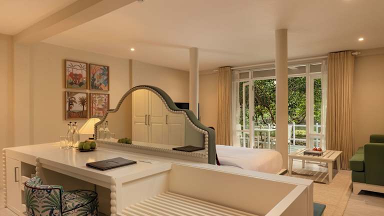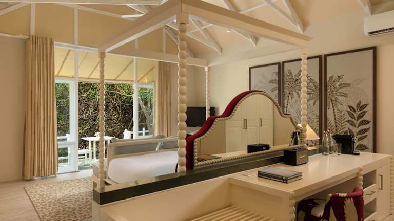Die Zimmer im Jungle Beach Resort sind modern und elegant eingerichtet. Verschiedene Zimmertypen wie Jungle Cabin, Lagoon Cabin und Beach Cabin bieten unterschiedliche Ausblicke, darunter Garten, Lagune und Meer. Jedes Zimmer verfügt über Annehmlichkeiten wie WLAN, Klimaanlage, Safe, Minibar (gegen Gebühr) und jeweils ein eigenes Bad. Die Einrichtung reicht von einer Sitzecke bis hin zu Terrassen mit Liegestühlen und direktem Zugang zum Pool.
