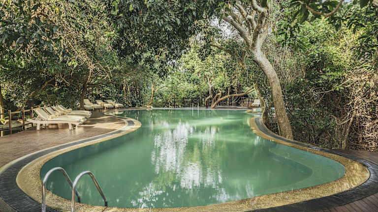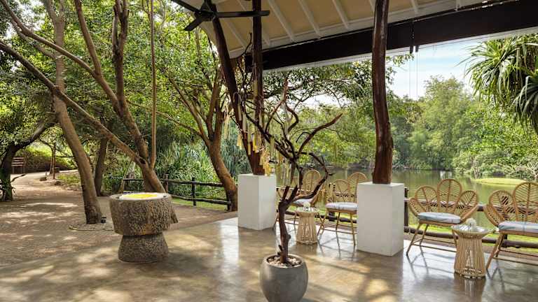 Das Hotel befindet sich direkt am privaten Strand, zwischen dem Indischen Ozean und einer Lagune, in der Nähe von Trincomalee, etwa 25 km entfernt. Die Umgebung ist naturbelassen, ruhig und bietet Zugang zu verschiedenen Sehenswürdigkeiten. Der Sandstrand hat eine Länge von ca. 3 km und wird öffentlich genutzt, mit einem eigenen Abschnitt für das Hotel. Der Flughafen ist ca. 254 km entfernt, die Fahrzeit beträgt etwa 5,3 Stunden.
