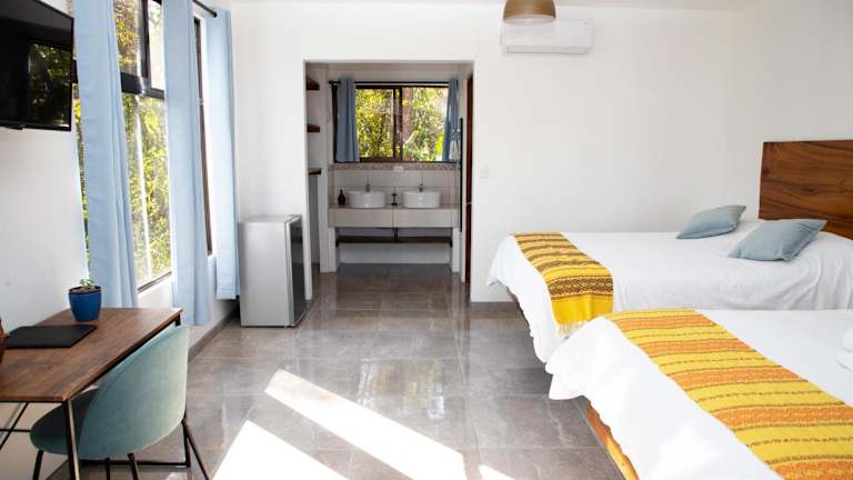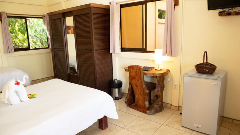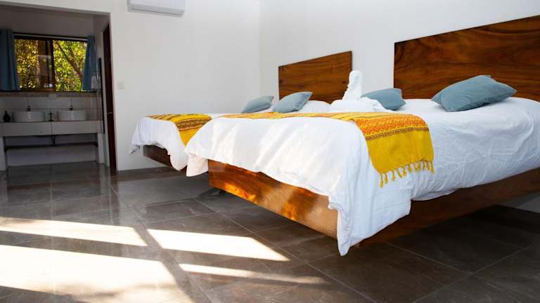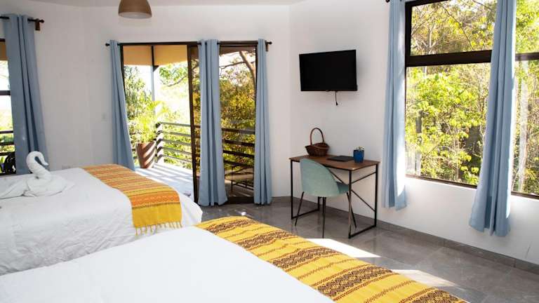 Die Zimmer in der Jungle Lodge at Wild Sun Rescue Center sind klimatisiert und mit einem Schreibtisch, einem Flachbild-TV sowie einem eigenen Badezimmer ausgestattet. Jedes Zimmer verfügt zudem über Bettwäsche, Handtücher und eine Veranda oder Patio mit Meerblick. Es sind Kühlschränke vorhanden, und in ausgewählten Zimmern befindet sich eine Terrasse. Ein Safe ist ebenfalls in den Gästezimmern vorhanden.