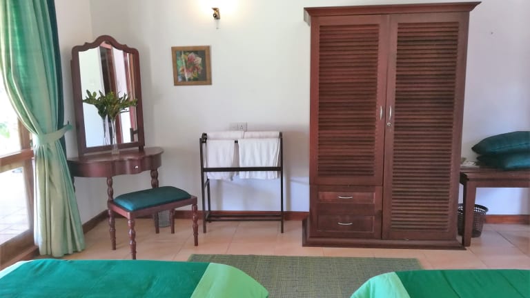 Die Privatzimmer im Hotel Jungle Tide bieten Ihnen einen gemütlichen Sitzbereich und ein eigenes Badezimmer mit Dusche und kostenlosen Pflegeprodukten. Jedes Zimmer verfügt über eine Veranda, auf der Sie die frische Luft und den Blick auf den Garten genießen können. Kostenloser Kaffee, Tee und Trinkwasser stehen für Sie bereit. Das Hotel bietet auch eine Gemeinschaftslounge mit einer Auswahl an Büchern und CDs sowie eine 24-Stunden-Rezeption für Ihren Komfort.