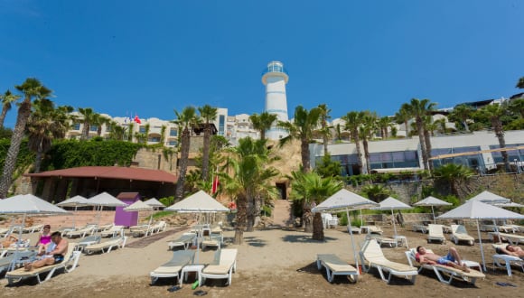 Das Hotel Light House Hotel liegt in Bodrum/Ortakent und bietet eine ideale Lage direkt am Meer. Das Stadtzentrum ist etwa 4 km entfernt und der Flughafen ist in ca. 45 Minuten mit öffentlichen Verkehrsmitteln erreichbar. Der Sandstrand befindet sich direkt vor dem Hotel und bietet Sonnenliegen und Sonnenschirme gegen Gebühr.