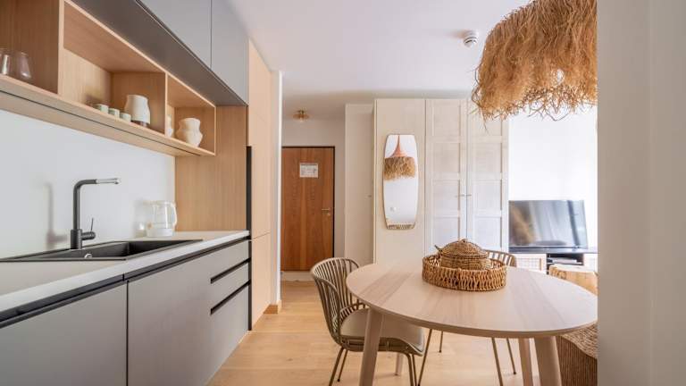 Im Brand new sea apartment with balcony haben Sie die Möglichkeit, Ihre eigenen Mahlzeiten zuzubereiten, da die Küche voll ausgestattet ist. Alternativ können Sie auch in einem der Restaurants in der Nähe speisen und die lokale Küche genießen.