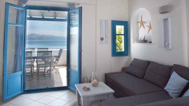 JUST BLUE with amazing Sea Views in Piso Livadi ist eine Unterkunft, die sich durch ihre schönen Ausblicke auf das Meer auszeichnet. Die Einrichtung verfügt über einen Garten, eine Terrasse sowie Grillmöglichkeiten und bietet kostenfreies WLAN.