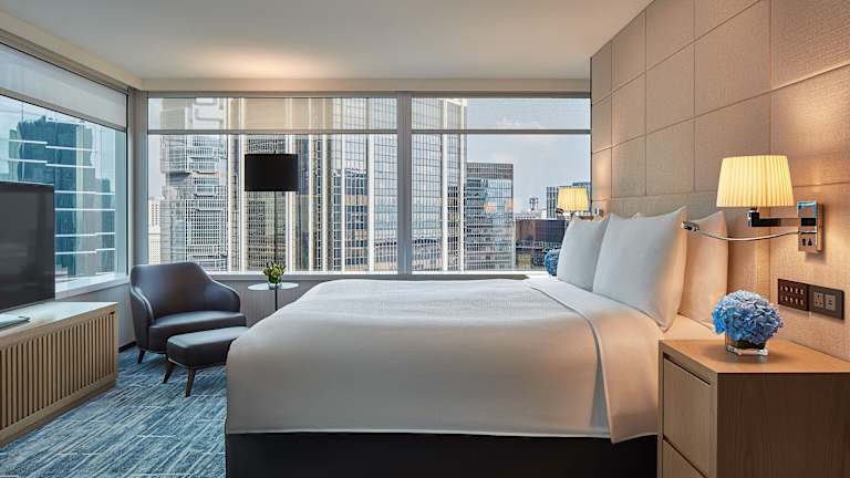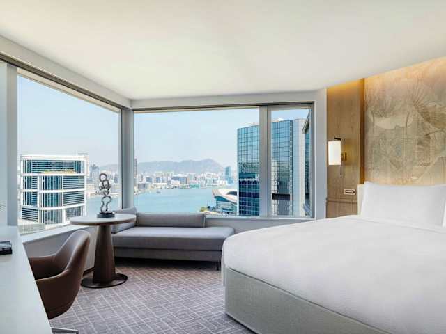 Die 602 Zimmer des JW Marriott Hotel Hong Kong bieten einen atemberaubenden Blick auf die Stadt, den Victoria Harbour oder die umliegenden Berge. Jedes Zimmer ist mit exklusiven Matratzen, einer Kaffeemaschine, einem Unterhaltungssystem und einem eleganten Marmorbad mit separater Duschkabine ausgestattet.