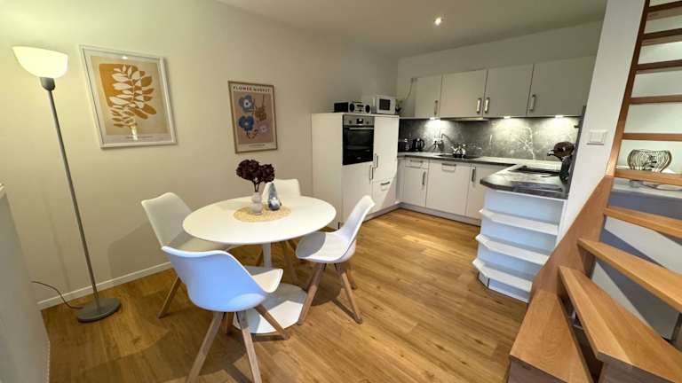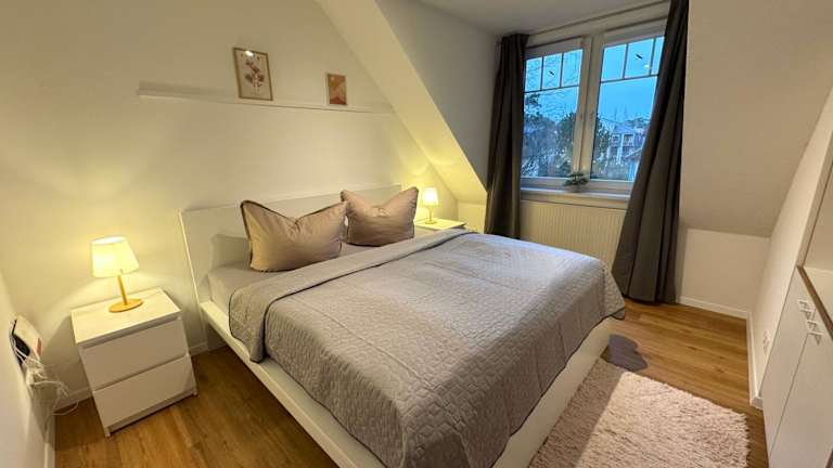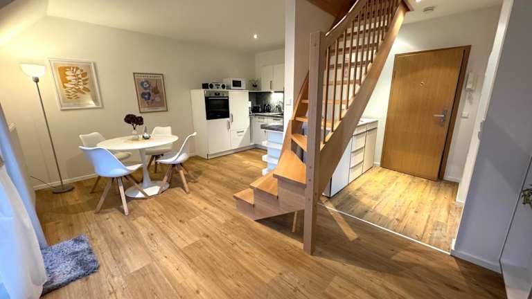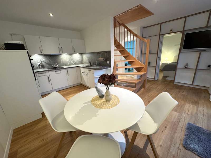 Die Ferienwohnung bietet Platz für bis zu vier Personen und umfasst zwei Schlafzimmer, ein Wohnzimmer, eine gut ausgestattete Küche und ein Badezimmer mit Dusche und Badewanne. Ein Satelliten-Flachbild-TV ist ebenfalls vorhanden. Handtücher und Bettwäsche können gegen Aufpreis bereitgestellt werden.