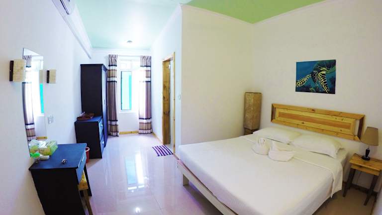 Die Zimmer im Kaafu Inn Guraidhoo sind komfortabel und gemütlich eingerichtet. Jedes Zimmer verfügt über einen Kleiderschrank, einen Schreibtisch und ein eigenes Badezimmer mit Dusche, kostenfreien Pflegeprodukten und einem Haartrockner. Alle Zimmer sind klimatisiert und bieten eine angenehme Atmosphäre, um sich nach einem Tag am Strand zu entspannen.
