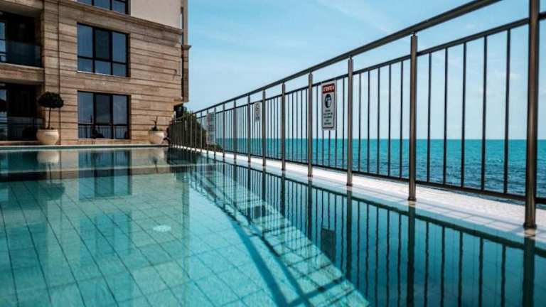Cabacum Plaza apartments bietet modernen Komfort mit kostenlosem WLAN, einer Klimaanlage, einem saisonalen Außenpool und einem eigenen Strandbereich. Die Unterkunft verfügt über eine Terrasse, die den Gästen Meerblick bietet, sowie einen Sitzbereich und einen Kabel Flachbild-TV. Die Wohneinheiten sind zudem mit einer voll ausgestatteten Küche ausgestattet, die einen Kühlschrank, Ofen, Mikrowelle, Herdplatte, Toaster, Kaffeemaschine und Wasserkocher umfasst. Zum Badezimmer gehört eine Dusche.
