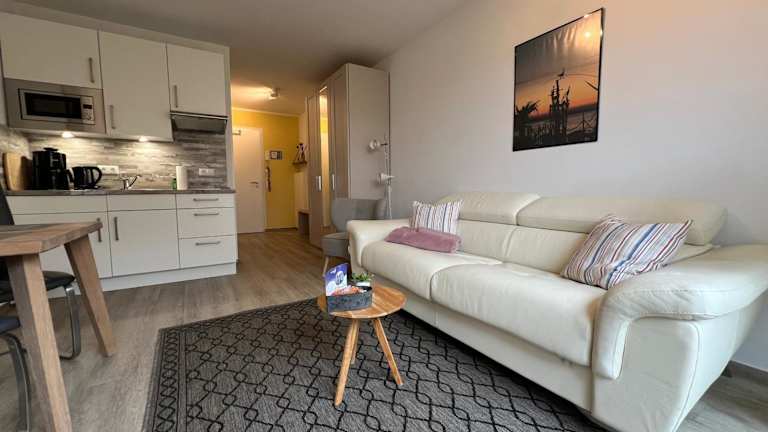 Das Hotel Kabine 03 bietet komfortable Unterkünfte mit einem Wohnzimmer, das mit einem Flachbild-TV ausgestattet ist. Die Küche ist gut ausgestattet mit einem Kühlschrank, einer Mikrowelle, einem Toaster, einer Kaffeemaschine und einem Wasserkocher. Das Apartment verfügt auch über einen Balkon, von dem aus Sie die frische Meeresluft genießen können. WLAN ist kostenlos verfügbar und kostenfreie Privatparkplätze stehen zur Verfügung.