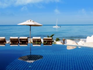 Das Kacha Resort auf der Insel Ko Chang bietet Paaren und Familien gleichermaßen einen perfekten Ort, um sich zu entspannen und die atemberaubende Natur zu genießen. Mit seinen zwei Außenpools, den beiden Restaurants, der Strandbar und der Poolbar bietet das Resort alles, was man für einen gelungenen Urlaub benötigt. Die Zimmer sind komfortabel eingerichtet und verfügen über eine eigene Terrasse mit Blick auf den Garten. Entspannen Sie bei einer Massage im Spa Majesty oder nutzen Sie die verschiedenen Freizeitmöglichkeiten wie Fußball am Strand, Tauchen oder Dschungeltrekking. Das Resort bietet außerdem kostenfreies WLAN in der Lobby und kostenlose Parkplätze.