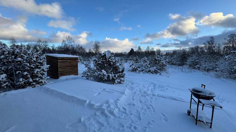 Das Ferienhaus umfasst 1 Schlafzimmer und ein Wohnzimmer. Es gibt eine voll ausgestattete Küche, die mit einem Kühlschrank und einer Kaffeemaschine ausgestattet ist. Ein Badezimmer mit Dusche und Haartrockner ist ebenfalls vorhanden. Handtücher und Bettwäsche werden zur Verfügung gestellt.