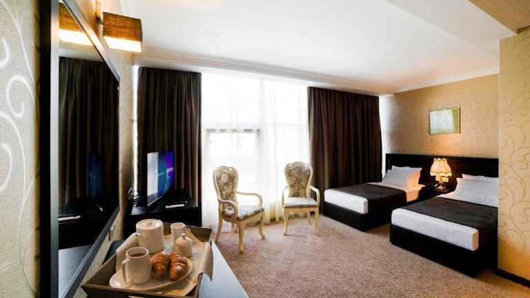 Das Kalasi Hotel in Tiflis bietet eine ideale Lage im Stadtzentrum, nur wenige Gehminuten von wichtigen Sehenswürdigkeiten und der U-Bahn entfernt. Die stilvollen Zimmer sind komfortabel eingerichtet und mit modernen Annehmlichkeiten ausgestattet. Genießen Sie kostenloses WLAN und Privatparkplätze während Ihres Aufenthalts. Das Hotel verfügt auch über ein Restaurant und eine Bar für Ihre gastronomischen Bedürfnisse.