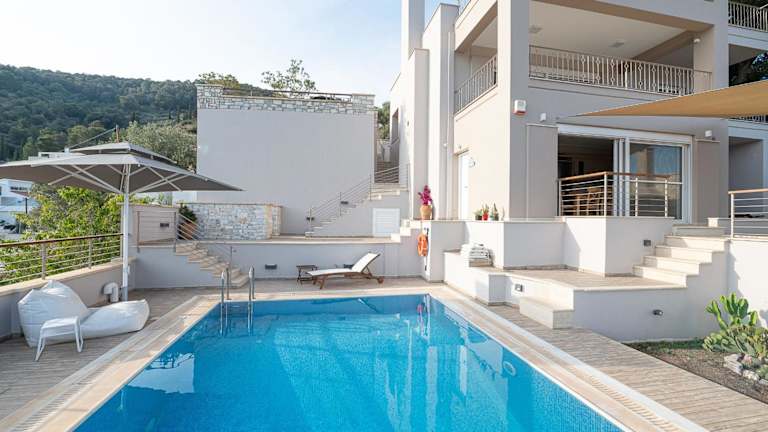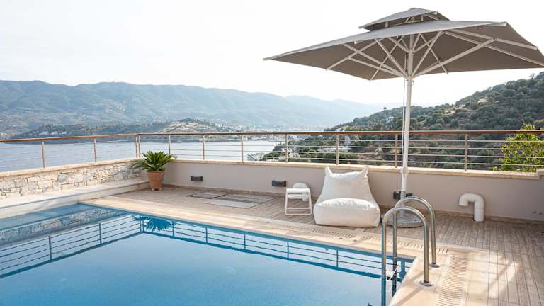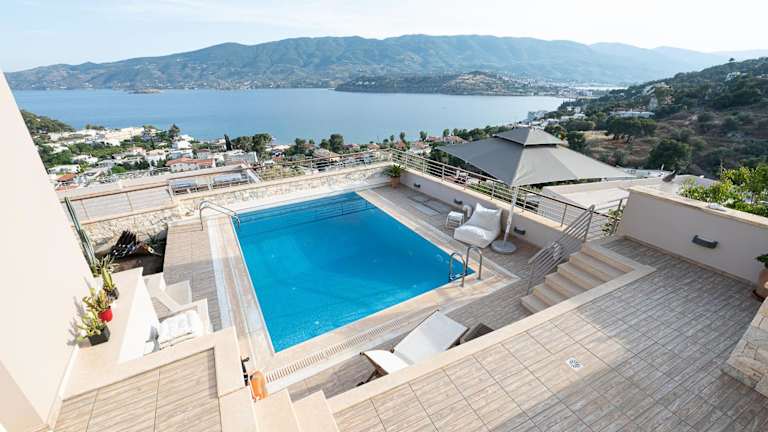 Die Kalavria Luxury Suites, Afroditi Suite mit herrlichem Meerblick und eigenem Pool ist die perfekte Wahl für einen luxuriösen Aufenthalt in Poros. Mit einem saisonalen Außenpool, einem Garten und einer Terrasse bietet diese Unterkunft alles, was Sie für einen entspannten Urlaub benötigen. Die Villa selbst ist modern und komfortabel eingerichtet und verfügt über kostenfreies WLAN und einen atemberaubenden Blick auf die Stadt. Genießen Sie den zusätzlichen Komfort kostenloser Privatparkplätze und Zimmerservice.