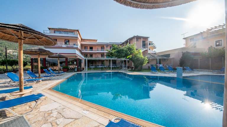 Das Kalias Hotel befindet sich im Ort Vassiliki. Die Umgebung lädt zur Erkundung ein und wird durch freundliches Personal an der Rezeption unterstützt.