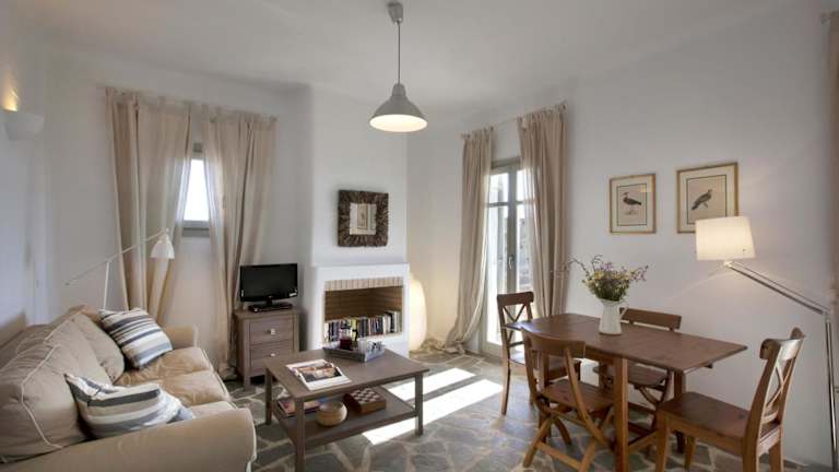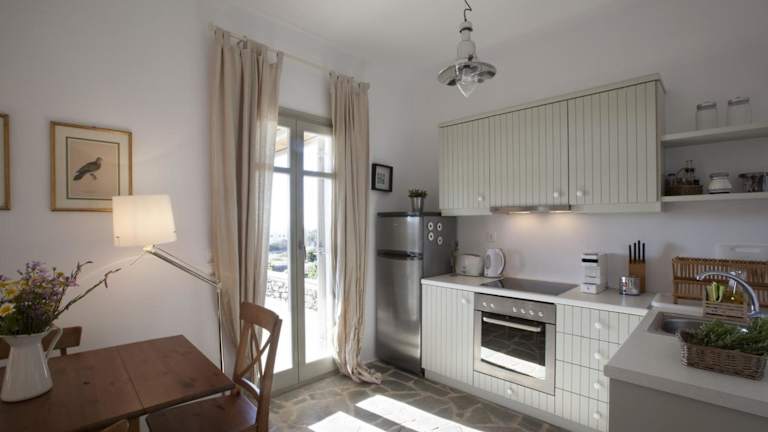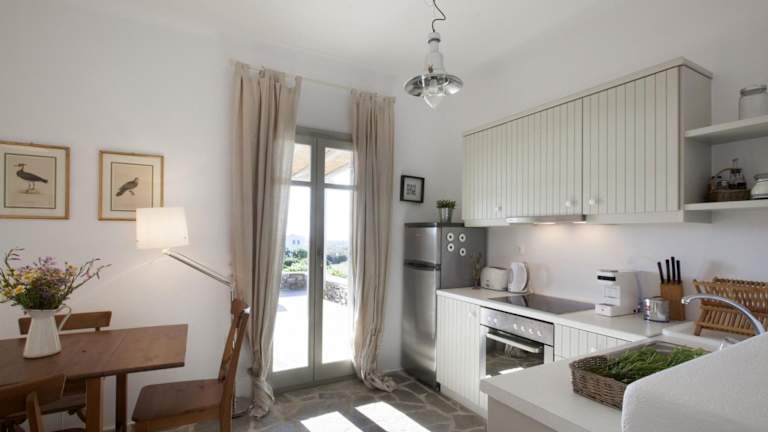 In der Villa steht Ihnen eine voll ausgestattete Küche zur Verfügung, in der Sie Ihre eigenen Mahlzeiten zubereiten können. Alternativ können Sie auch die nahegelegenen Restaurants in Naoussa erkunden und die lokale Küche genießen.
