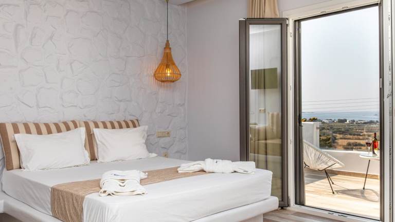 Das Kallithea Hotel bietet gemütliche Studios und Apartments im traditionellen Kykladen-Stil. Die Unterkünfte sind mit grünen Holzmöbeln eingerichtet und verfügen über eine Küchenzeile und ein eigenes Badezimmer mit Dusche. Zur Ausstattung gehören auch eine Klimaanlage, ein Bügeleisen und ein TV im Wohnzimmer. Jedes Zimmer hat zudem einen eigenen Balkon, von dem aus Sie den atemberaubenden Blick auf die Ägäis genießen können.