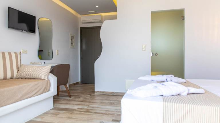 Das Kallithea Hotel bietet keine speziellen Sport- und Freizeiteinrichtungen. Genießen Sie jedoch die Nähe zu den wunderschönen Sandstränden von Plaka und Agios Prokopios, wo Sie verschiedene Wassersportarten ausprobieren oder einfach nur am Strand entspannen können. Erkunden Sie die Umgebung und entdecken Sie die Schönheit der Insel Naxos.