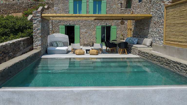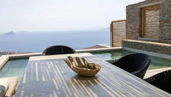 Die Kalma Living Luxury Villas befinden sich auf der Insel Kythnos, nur 80 km vom Flughafen Syros entfernt. Die Anlage liegt in einer ruhigen Umgebung und bietet einen atemberaubenden Meerblick.