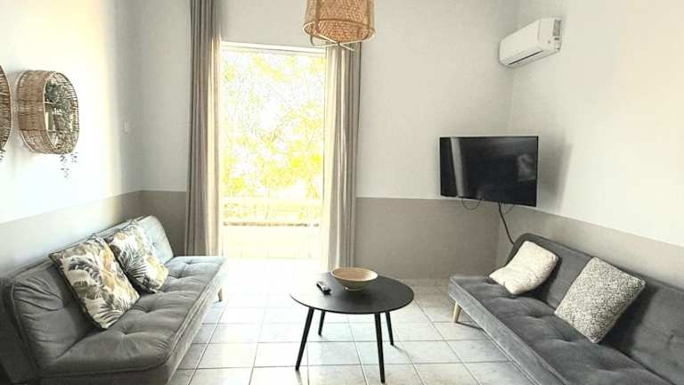 Die Kamari Apartments seafront bieten klimatisierte Unterkünfte, die mit allem ausgestattet sind, was Sie für einen angenehmen Aufenthalt benötigen. Jede Wohneinheit verfügt über ein komfortables Schlafsofa und einen gemütlichen Sitzbereich, in dem Sie entspannen können. Ein Flachbild-TV sorgt für Unterhaltung, während eine gut ausgestattete Küche es Ihnen ermöglicht, Ihre eigenen Mahlzeiten zuzubereiten. Das private Badezimmer ist mit einem Haartrockner ausgestattet.