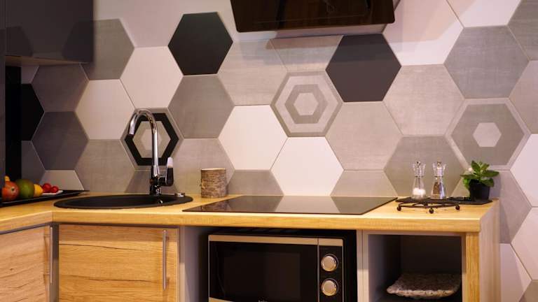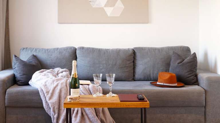 Jede Wohneinheit ist mit einer voll ausgestatteten Küche ausgestattet, die einen Esstisch sowie ein Küchengerät wie Kühlschrank, Mikrowelle und Herdplatte umfasst.