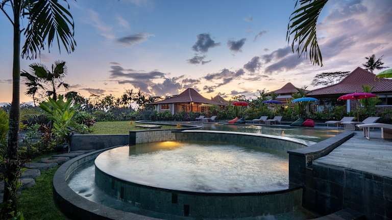 Die Unterkunft Kampung Uma Dawa Villas and Spa befindet sich in Ubud, 5 km von der Höhle Goa Gajah und 8,1 km vom Palast von Ubud entfernt. In der Nähe liegt der Saraswati-Tempel, der 8,2 km entfernt ist, sowie der Affenwald von Ubud, der sich 8,8 km entfernt befindet. Der Flughafen Ngurah Rai ist 40 km von der Unterkunft entfernt und ein kostenpflichtiger Flughafentransfer wird angeboten.