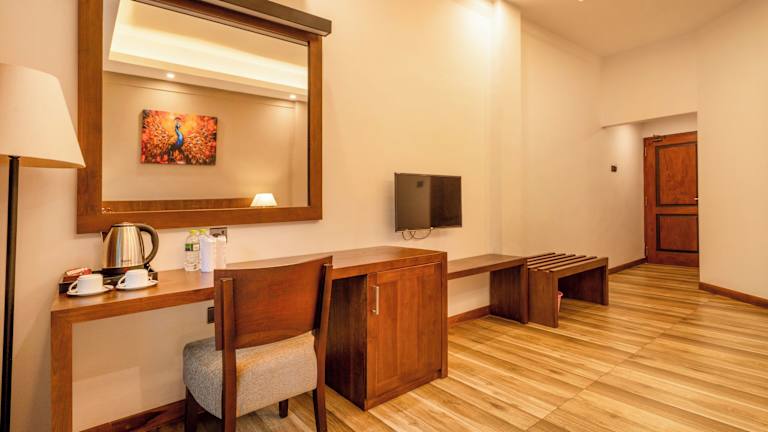 Das Kandyan Reach Hotel bietet klimatisierte Zimmer mit moderner Ausstattung. Jedes Zimmer verfügt über einen Schreibtisch, einen Wasserkocher, einen Kühlschrank, eine Minibar, einen Safe und einen Flachbild-TV. Genießen Sie den Komfort Ihres eigenen Badezimmers mit Bidet. Die Zimmer sind auch mit einem Balkon ausgestattet, auf dem Sie sich entspannen können. Bettwäsche und Handtücher werden gestellt, um Ihren Aufenthalt angenehm zu gestalten.