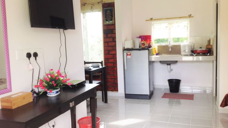 Das Ferienhaus in Kampung Perana bietet eine gemütliche Unterkunft in der Nähe des Flughafens von Langkawi. Mit einem Außenpool, einer Terrasse und einem Garten können die Gäste die malerische Umgebung genießen. Das Ferienhaus verfügt über eine voll ausgestattete Küche, ein komfortables Schlafzimmer und kostenloses WLAN. Die Unterkunft bietet zudem Unterstützung bei der Tourenplanung und kostenlose Parkplätze.