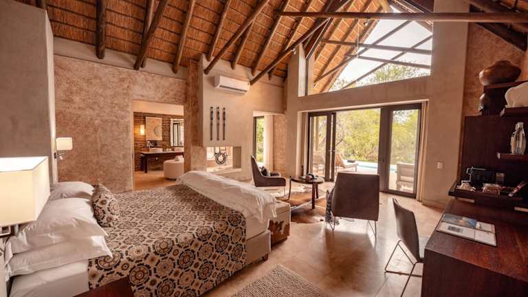 Die gastronomischen Einrichtungen umfassen ein zeitgenössisches Esszimmer mit einem Weinkeller, einen Frühstückssaal und eine Bar. Die Unterbringung bietet All-Inclusive-Verpflegung an, mit Optionen für Diätgerichte, glutenfreie Mahlzeiten und vegane Kost. Das Abendessen wird im Freien im traditionellen Boma serviert.