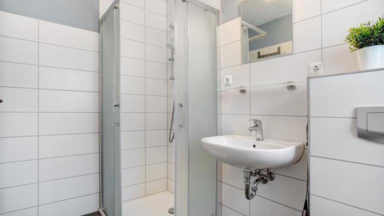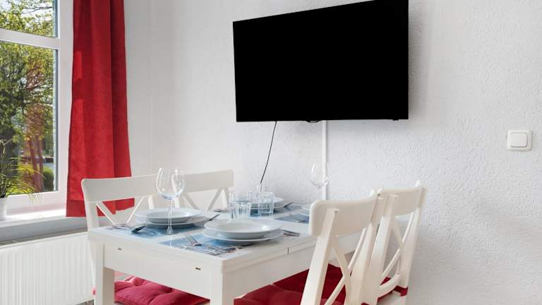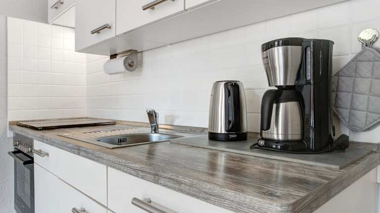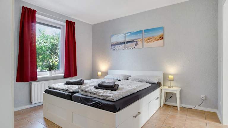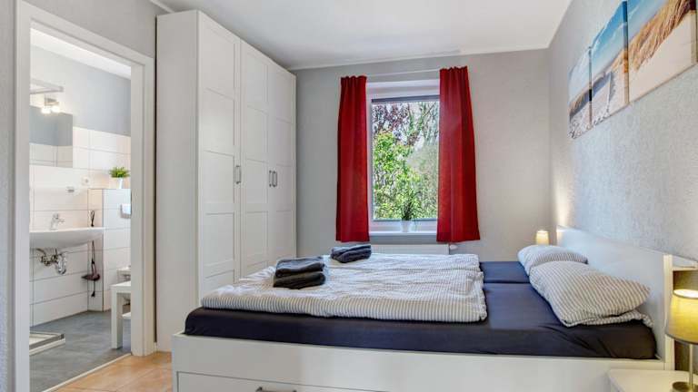 Die Ferienwohnung besteht aus einem Schlafzimmer, einem Wohnzimmer und einer voll ausgestatteten Küche mit Kühlschrank und Kaffeemaschine. Ein Badezimmer mit Dusche sowie ein Fernseher sind ebenfalls vorhanden.
