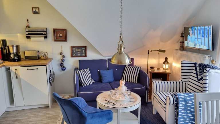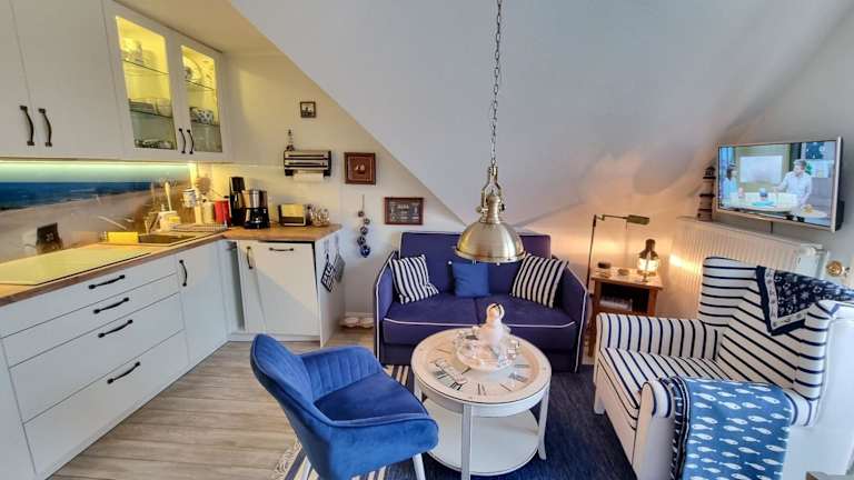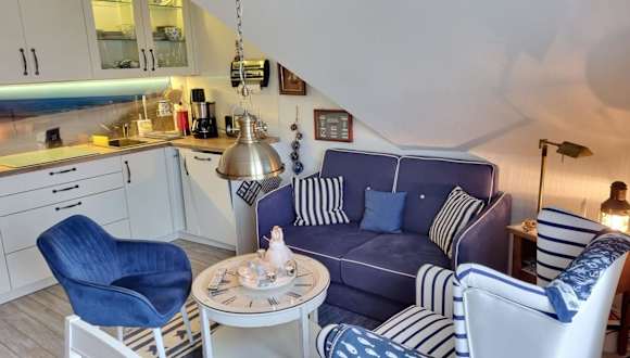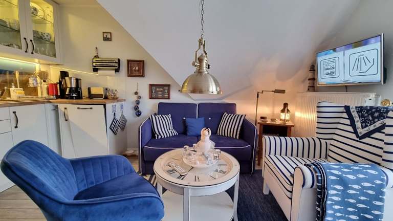 Das Kapitänshaus Steuerbord - 63-01 bietet komfortable Übernachtungsmöglichkeiten mit einem Balkon und kostenlosem WLAN. Die Unterkunft besteht aus zwei Schlafzimmern, einem Wohnzimmer und ist mit einer voll ausgestatteten Küchenzeile ausgestattet. Die Unterkunft hat eine Nichtraucherpolitik, und es sind keine Haustiere erlaubt.