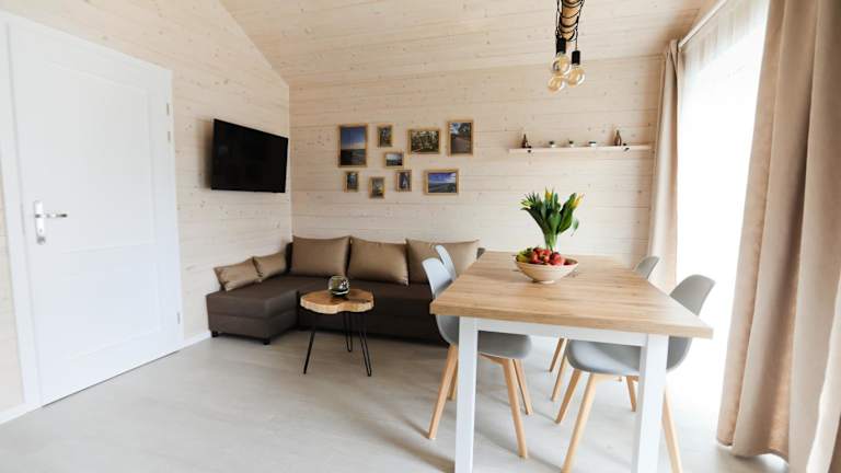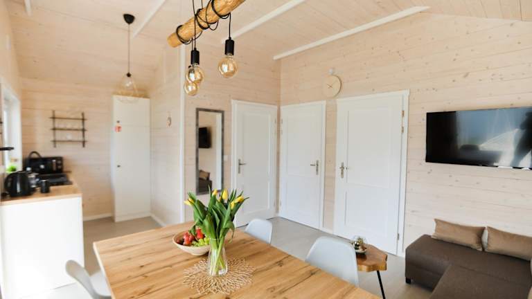 Die Lodge im Karuba Resort, Gdańsk - Wyspa Sobieszewska bietet komfortable Unterkünfte mit einer Vielzahl von Annehmlichkeiten. Jede Lodge verfügt über eine Terrasse, einen gemütlichen Sitzbereich und einen Flachbild-TV für entspannte Abende. Eine voll ausgestattete Küche mit einem Kühlschrank und einem Kochfeld ermöglicht es Ihnen, Ihre eigenen Mahlzeiten zuzubereiten. Das private Badezimmer ist mit einer Dusche und einem Haartrockner ausgestattet. Kostenloses WLAN steht Ihnen in allen Zimmern zur Verfügung.