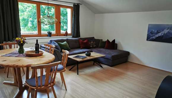 Der Ferienwohnung Karwendelglück bietet einen Garten und eine Terrasse. Die Unterkunft ermöglicht den Zugang zu kostenlosem WLAN und bietet kostenlose Privatparkplätze.