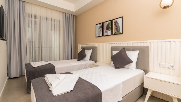 Die Zimmer im Hotel KAŞ EVDERHAN sind komfortabel und bieten alles, was Sie für einen angenehmen Aufenthalt benötigen. Jedes Zimmer ist mit Klimaanlage, einem Schreibtisch, einer Terrasse mit Blick auf die Stadt, einem eigenen Bad, einem Flachbild-TV, Bettwäsche und Handtüchern ausgestattet. Es gibt auch einen Kleiderschrank und einen Wasserkocher in jedem Zimmer.