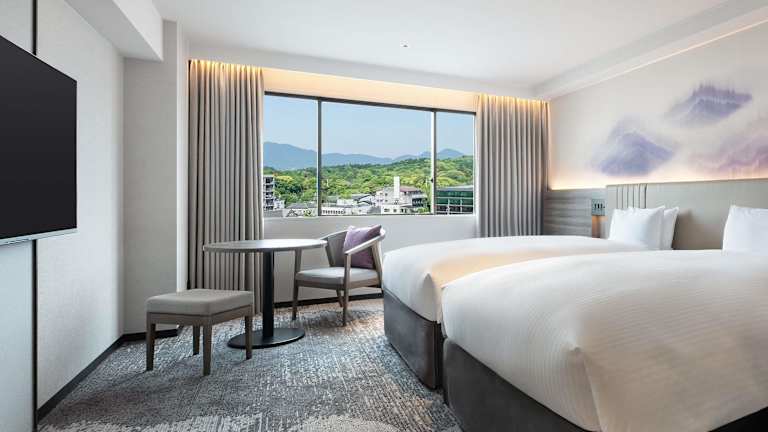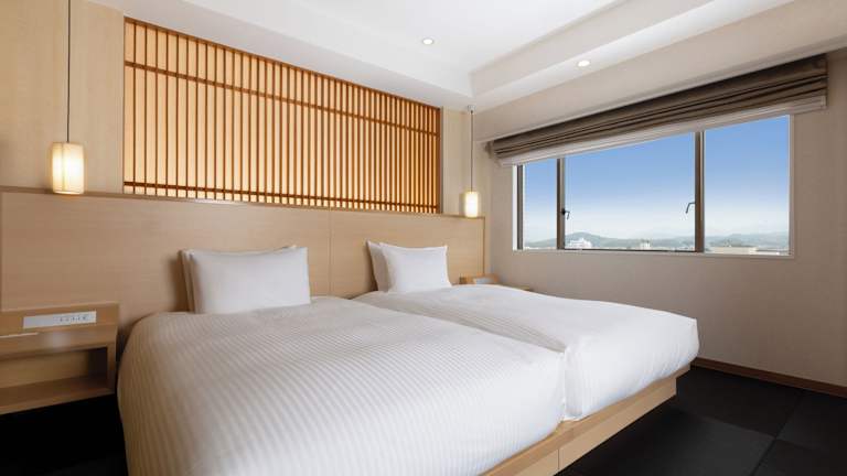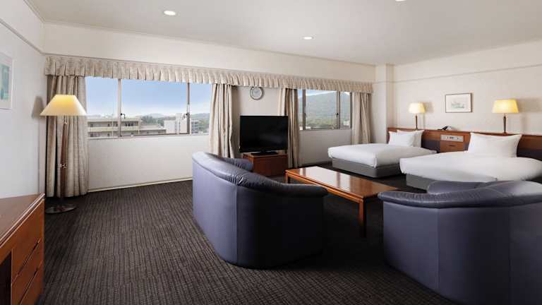 Die 204 Zimmer des Hotels The Kashihara bieten sowohl japanischen als auch westlichen Stil. Die Zimmer verfügen über eine Klimaanlage, einen LCD-TV, einen Minikühlschrank und einen Wasserkocher mit grünem Tee. Die japanischen Zimmer sind im traditionellen Stil eingerichtet, mit Futonbetten auf Tatamiböden. Alle Zimmer bieten kostenfreien Internetzugang (LAN).
