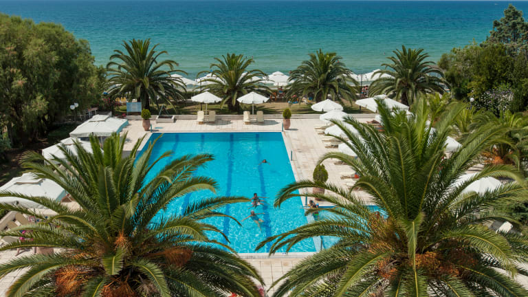 Kassandra Mare hotel is located by the Beach in the first Peninsula of Halkidiki in Northern Greece, between the villages of Nea Moudania and Nea Potidaia. The nearest airport is Macedonia Airport (SKG) and it is only 30 minutes drive (50 kilometres)