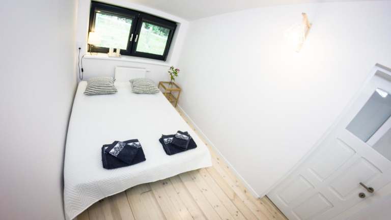 Das Ferienhaus im Kaszubski Reset verfügt über 2 Schlafzimmer, ein Wohnzimmer, eine Terrasse mit Seeblick und eine voll ausgestattete Küche. Handtücher und Bettwäsche werden gestellt.