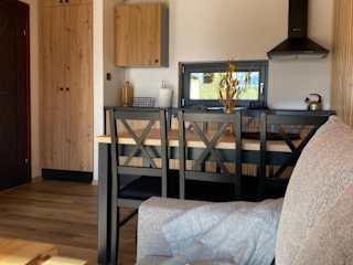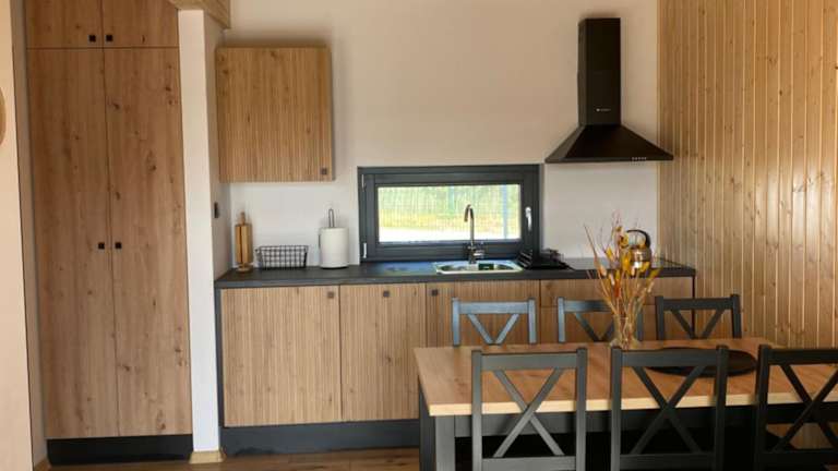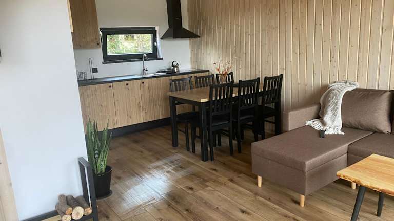 Das Apartment im Kaszubskie Stodoły verfügt über drei Schlafzimmer und bietet somit ausreichend Platz für Familien oder Gruppen. Das Wohnzimmer ist komfortabel eingerichtet und verfügt über einen Flachbild-TV. Die voll ausgestattete Küche bietet alle Annehmlichkeiten, die Sie für die Zubereitung Ihrer Mahlzeiten benötigen, einschließlich eines Kühlschranks und eines Geschirrspülers. Das Badezimmer ist mit einer Badewanne oder einer Dusche ausgestattet und bietet Komfort und Privatsphäre.
