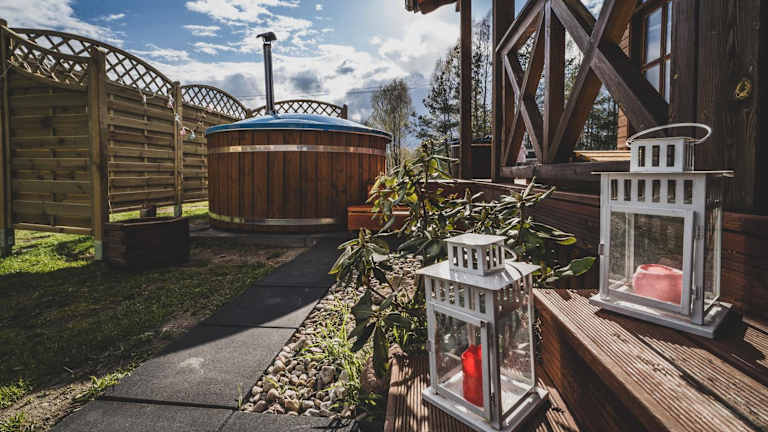 Kaszuby wczasy u Danusi sauna i bania bietet ihren Gästen eine Vielzahl an Annehmlichkeiten, darunter kostenloses WLAN und einen kostenfreien privaten Parkplatz. Die Unterkunft verfügt über eine Terrasse mit Gartenblick, einen Sitzbereich sowie eine Sauna und einen Whirlpool zur Entspannung.
