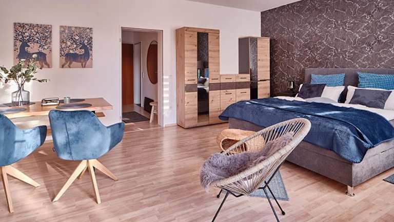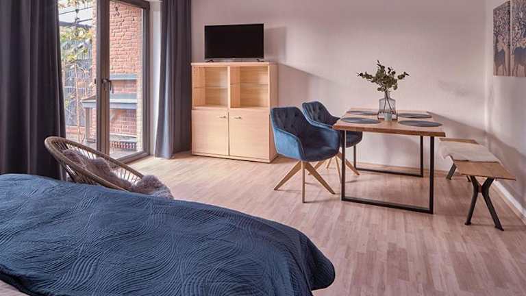 Die Ferienwohnungen sind mit einem Boxspringbett ausgestattet. Zur Ausstattung gehören ein Flachbild-TV und ein eigenes Badezimmer mit Dusche sowie kostenlosen Pflegeprodukten. In den Küchen finden sich ein Kühlschrank, Geschirrspüler, Ofen, Mikrowelle, Herdplatte, Toaster, Kaffeemaschine und Wasserkocher.