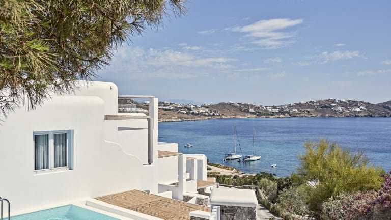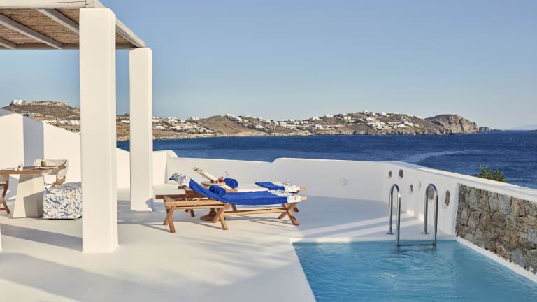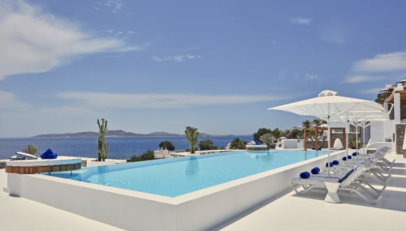 Das 5-Sterne-Boutique-Hotel Katikies Mykonos liegt direkt am Strand von Agios Ioannis auf Mykonos und bietet eine Auswahl an gehobenen gastronomischen Einrichtungen, 2 Infinity-Pools, ein Wellnesscenter und ein Fitnessstudio. Im Kykladenstil mit modernen Elementen bietet das Hotel elegant dekorierte Zimmer und Suiten mit unverbaubarem Meerblick. Die Unterkünfte im Katikies Mykonos bieten eigene Pools oder Whirlpools im Freien und führen auf eine eigene Terrasse mit einem Loungebereich. Zur Ausstattung gehören ein Flachbild-Sat-TV, ein iPod-Player, eine Nespresso-Kaffeemaschine, ein Safe und eine Minibar. Die modernen Badezimmer sind mit einem Haartrockner, Bademänteln, Hausschuhen und kostenfreien Pflegeprodukten ausgestattet. Der Zimmerservice steht Ihnen rund um die Uhr zur Verfügung. Sie können sich auf den Liegestühlen am Pool entspannen, ein erfrischendes Bad in den Infinity-Pools genießen oder sich im hoteleigenen Wellnesscenter mit einer Vielzahl von Massagen, Fußwaschritualen und verjüngenden Gesichts- und Körperanwendungen verwöhnen lassen. Eine Modeboutique mit griechischen und internationalen Designern und Marken ist ebenfalls an der Unterkunft vorhanden. Zu den gastronomischen Angeboten im Katikies Mykonos gehört das "Mikrasia Dinner experience", wo Sie Aromen aus Konstantinopel und Kleinasien, die mit einem modernen Touch zubereitet werden, sowie die romantische Seltz-Champagnerbar und das Restaurant kosten können. Eine Auswahl an griechischen Weinen, die von eleganten Aromen begleitet werden, können Sie auch in der Weinverkostungsbar der Unterkunft genießen. Das Katikies Mykonos liegt 4,5 km vom Hafen und Flughafen von Mykonos und 4 km von der kosmopolitischen Stadt Mykonos entfernt. Eine 24-Stunden-Rezeption, ein Tourenschalter sowie der Transferservice dienen Ihrem weiteren Komfort.