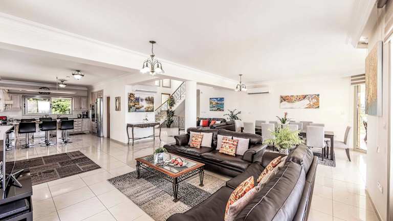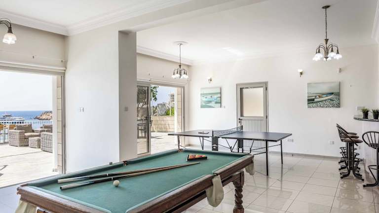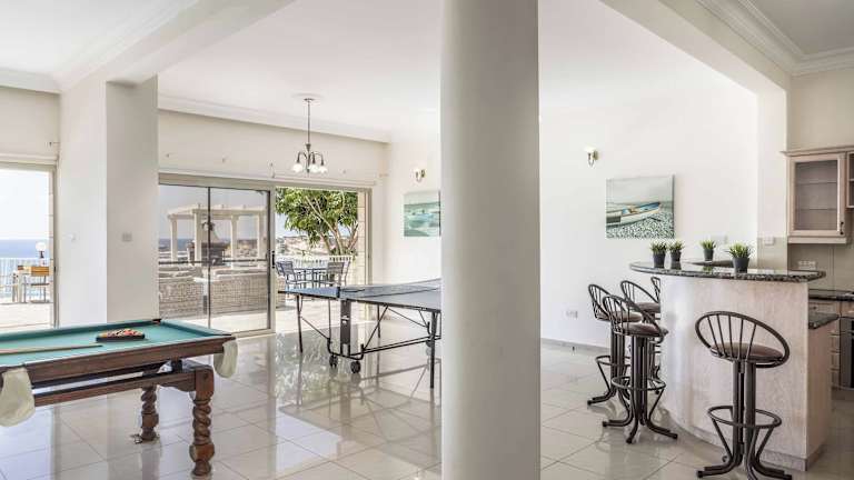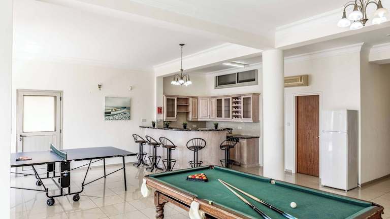 Die Villa Katina in Coral Bay ist eine luxuriöse Unterkunft, die mit einem eigenen Pool, atemberaubendem Bergblick und einem Balkon ausgestattet ist. Genießen Sie den Komfort eines Gartens, kostenfreies WLAN und einen herrlichen Poolblick. Die Villa verfügt über großzügige 7 Schlafzimmer und 13 Badezimmer, die mit Bettwäsche und Handtüchern ausgestattet sind. Entspannen Sie sich vor dem Flachbild-Sat-TV im geräumigen Essbereich oder bereiten Sie Ihre Mahlzeiten in der voll ausgestatteten Küche zu. Genießen Sie außerdem den Meerblick von der Terrasse aus. Die Villa Katina befindet sich in unmittelbarer Nähe der Coral Bay, nur 80 m entfernt, und der Strand Laourou ist ebenfalls bequem zu Fuß erreichbar, etwa 600 m entfernt. Der internationale Flughafen Paphos liegt nur 20 km von der Unterkunft entfernt und bietet einen kostenpflichtigen Flughafentransfer.